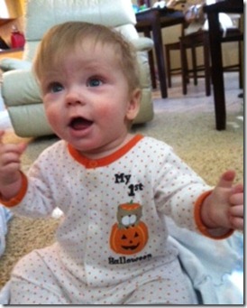 I had just ordered some baseball “babylegs” and I decided to go with the baseball theme and make it ourselves. We Jared took the Minnesota Twins logo, printed it out, and ironed it onto their onesies. He did a great job and I think their “costumes” were perfect for this year’s Halloween/ Fall Festival.